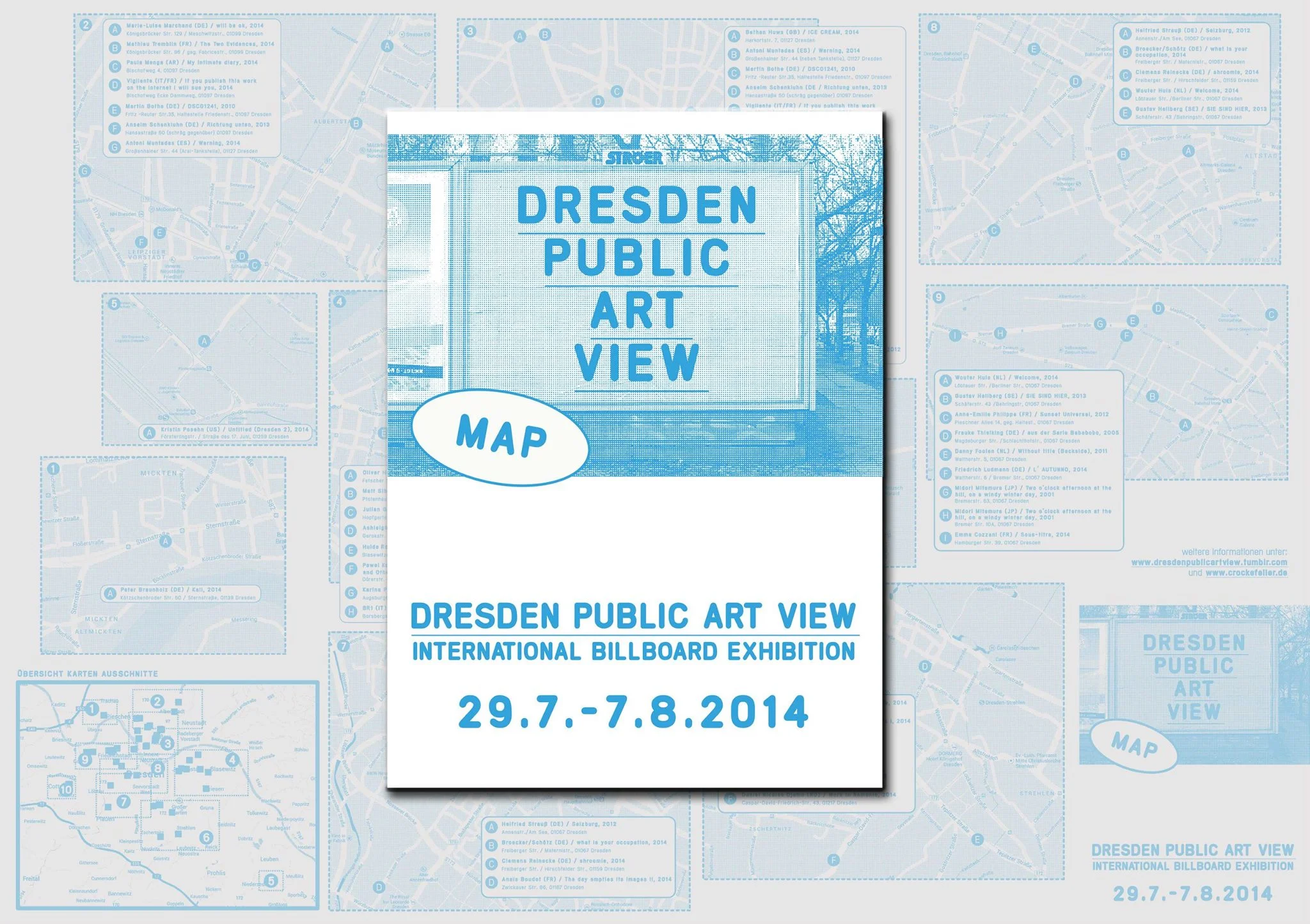 DRESDEN PUBLIC ART VIEW seeks to position artistic approaches outside of existing Art-Institutions in public every day life. 50 artworks of local and international artists were shown on 50 Billboards in Dresden, Germany from July, 29th to August, 8th, 2014.